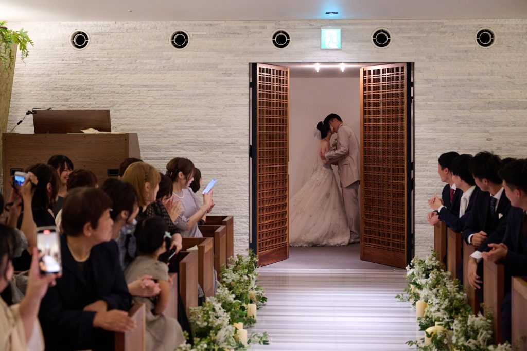 ゲストに拍手で退場を祝福された後、ゆっくりと向き合ってクロージングキスとして手の甲に…♡