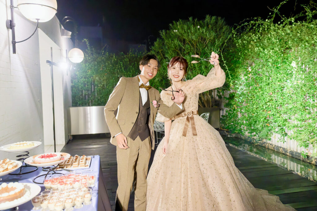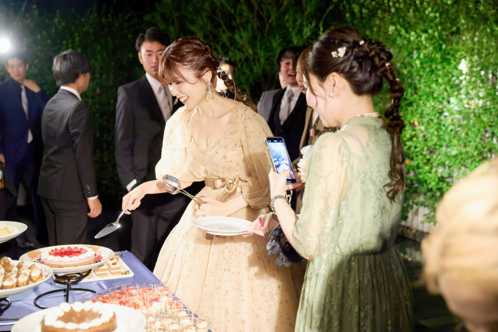 さて、おふたり主催の余興に続き、ガーデンテラスでデザートビュッフェを開催!