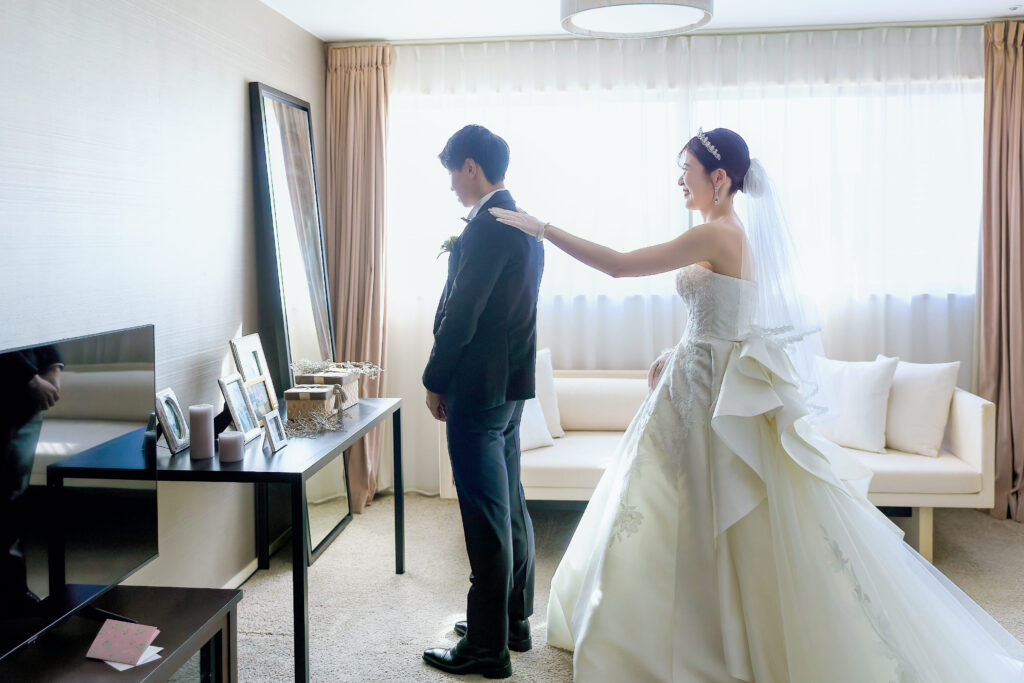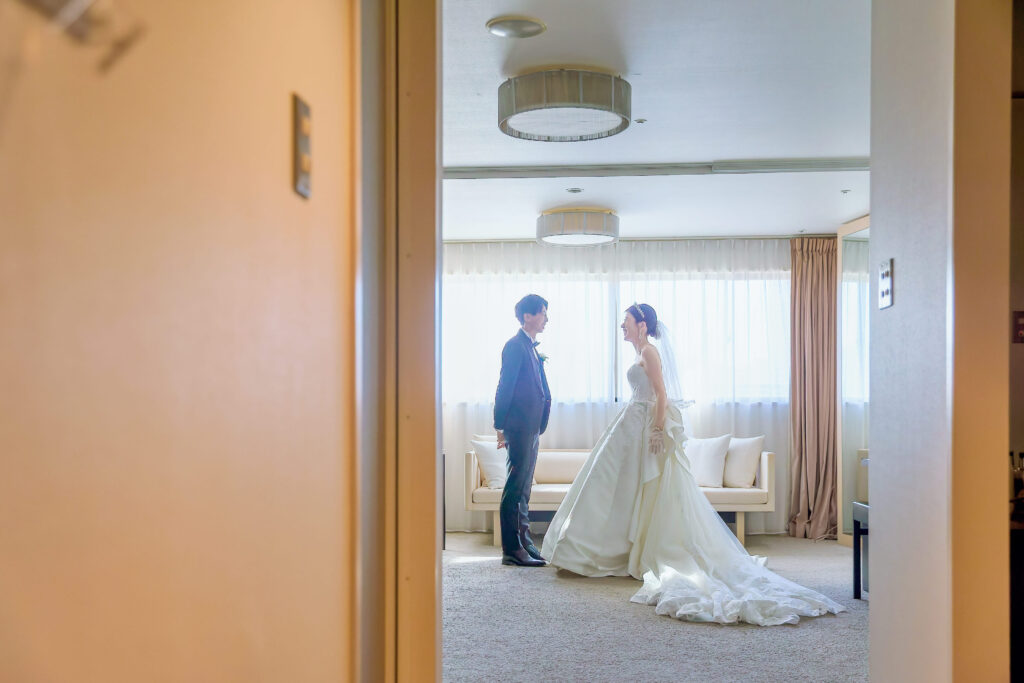 新郎新婦様のおふたりは、それぞれ専用のお部屋でお支度を整えてファーストミートへ。