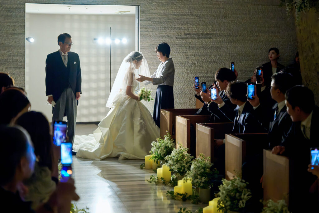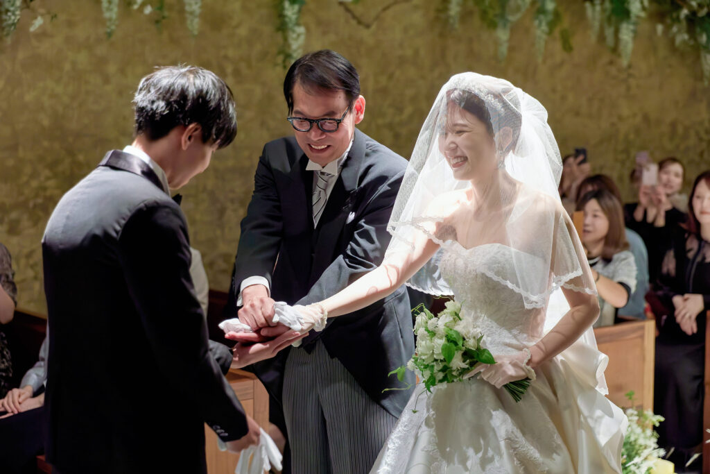 バトンタッチの瞬間。しっかりと新婦様の手をにぎり、新郎様に。