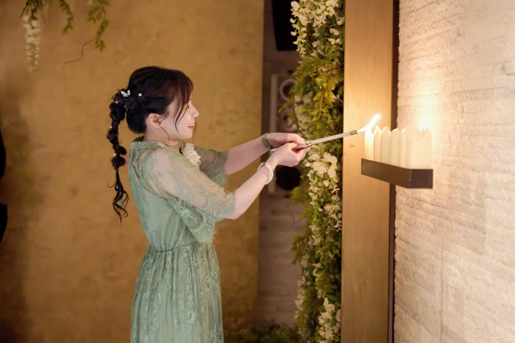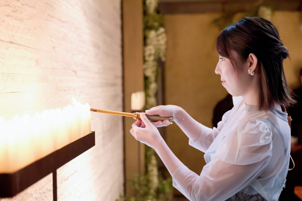 愛情・情熱・真実・尊敬など、ひとつひとつに違う意味をもつ12本のキャンドル、それぞれにふさわしいゲストを選び、火を灯していただきます。