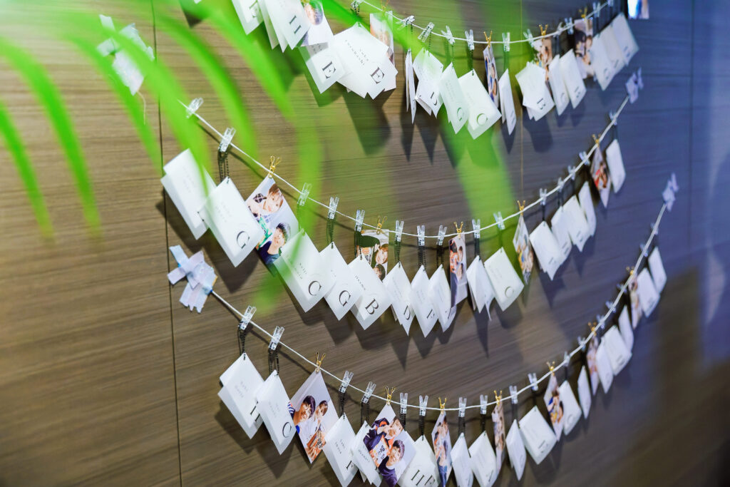 ゲストそれぞれへの手紙を封筒に入れて壁に貼ったものを当日ゲストに受け取ってもらいます♡