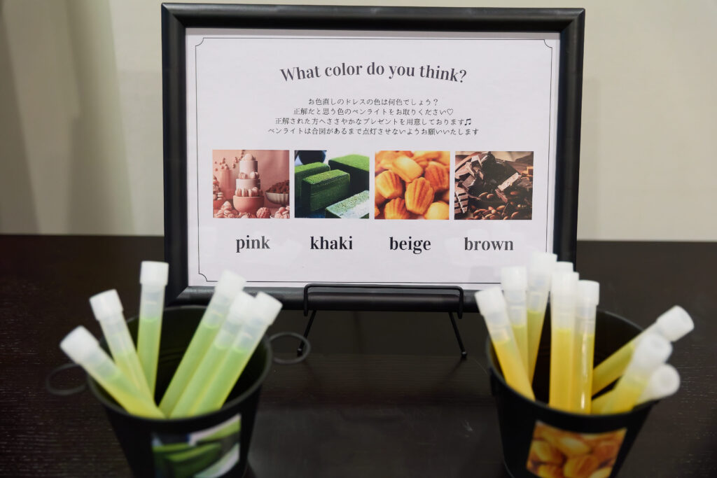 ドレスの色あてクイズ開催!予想したカラーのサイリウムを選んでいただきます